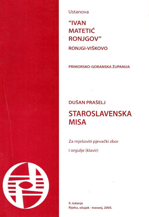 Izuzev partiture djela, notno izdanje sadrži predgovor, životopis Dušana Prašelja, sažeti tekst o Staroslavenskoj misi (tekstovi Lovorke Ruck) te popis glazbenih izdanja Ustanove “Ivan Matetić Ronjgov”.