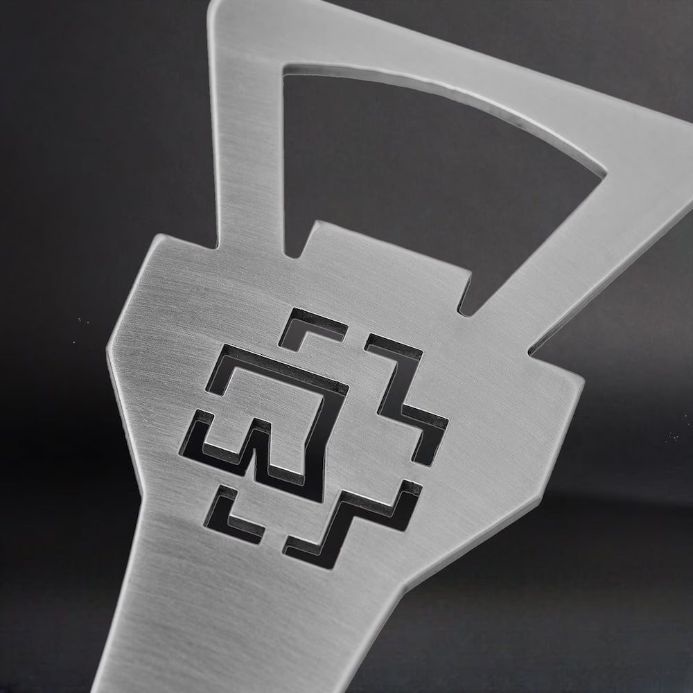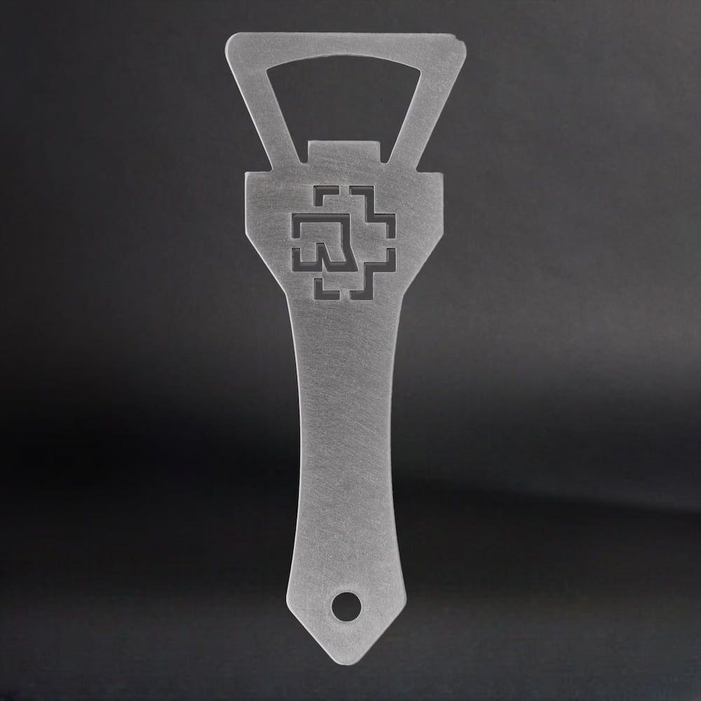 Rammstein bottle opener made of matt stainless steel.