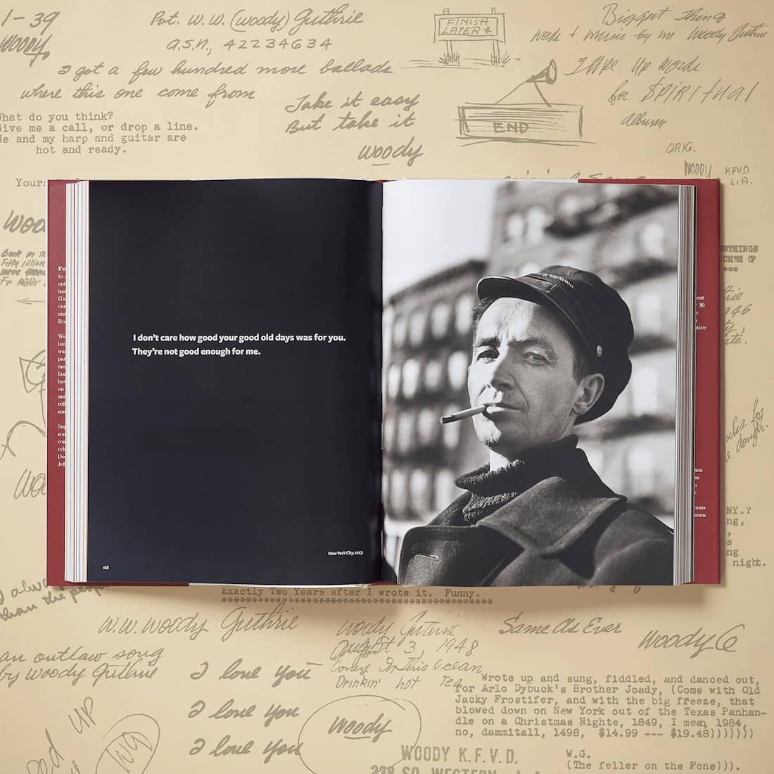 Featuring never before published lyrics to some of his greatest songs, personal diary entries, doodles, quips and jokes, and piercing insights on his politics and justice, this is an undeniable and important celebration of Woody’s vibrant life’s work. Created to be enjoyed by all – those interested in folk music or those interested in Woody’s thoughts on Life in all its aspects, from Politics and Spirituality to Love and Family.