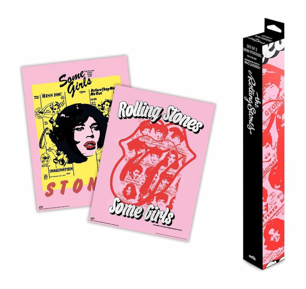The Rolling Stones set postera. Set sadrži 2 komada postera dimenzija 52 x 38cm i 8 ljepljivih jastučića koji se mogu lako ukloniti i ponovno koristiti.