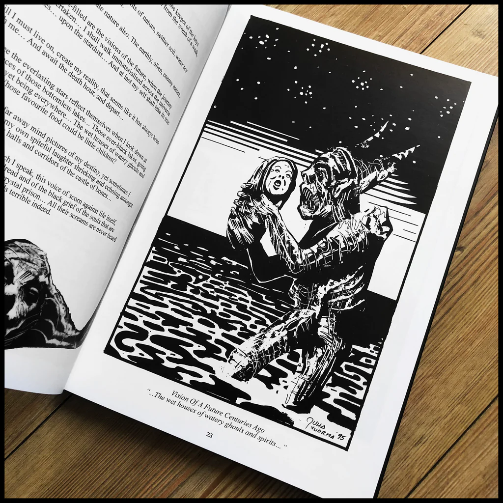 An utterly unique and compelling collection of writings and illustrations (created by a number of talented artists), it significantly fleshes out the rich universe that is glimpsed within those early musical releases. Considered a legendary tome by fans, the rare original changing hands for literally hundreds of dollars today.